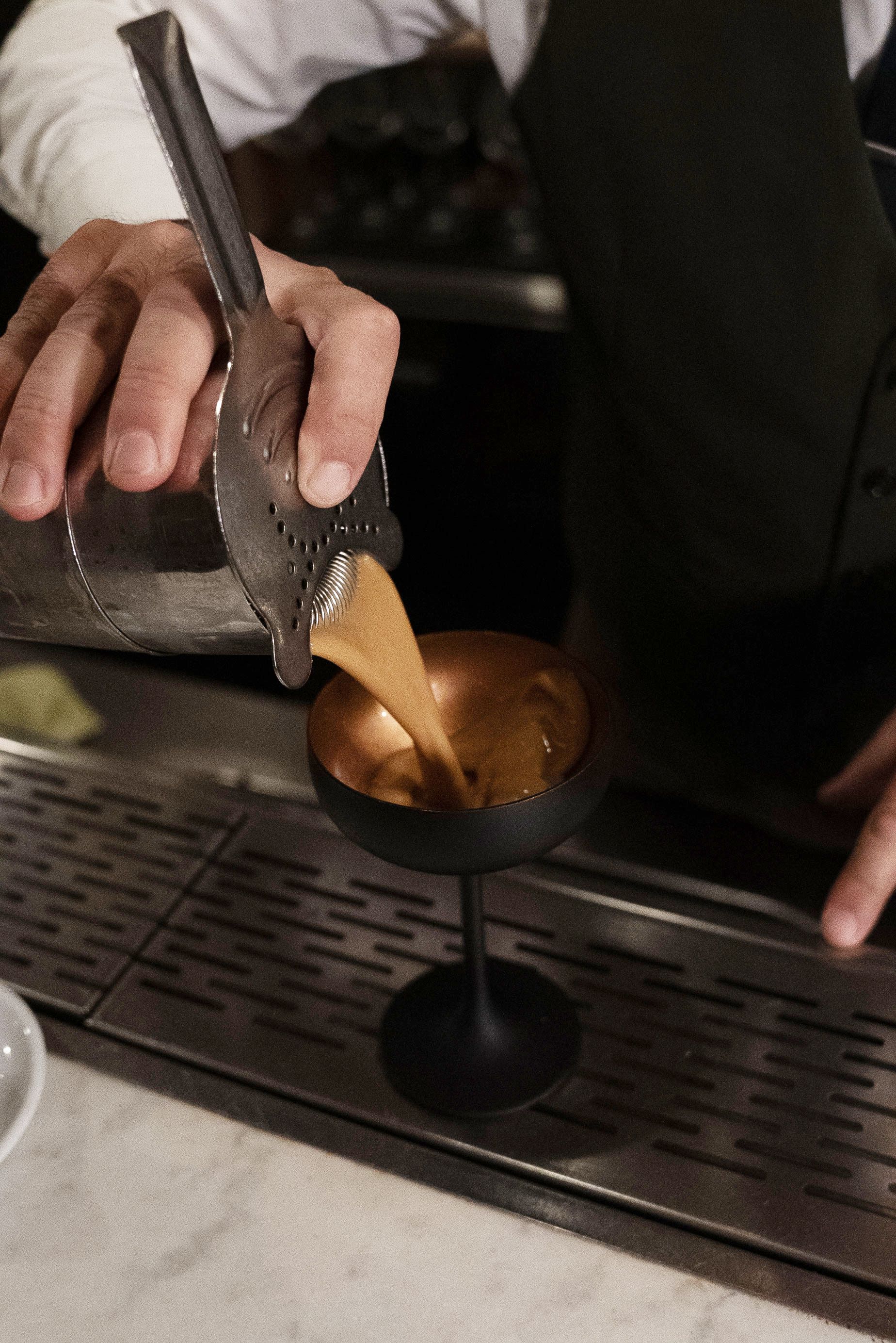 “Una partendo dalla macchina, quindi un caffè espresso, ispirandoci in realtà a una ricetta originale della nostra città: un caffè caldo dei nostri pescatori che si fa da sempre, il Turchetto, quindi un caffè bollente, servito con dello zucchero, Rum e anice. In questo caso l’abbiamo modificato e lo serviamo praticamente freddo come fosse un espresso Martini."